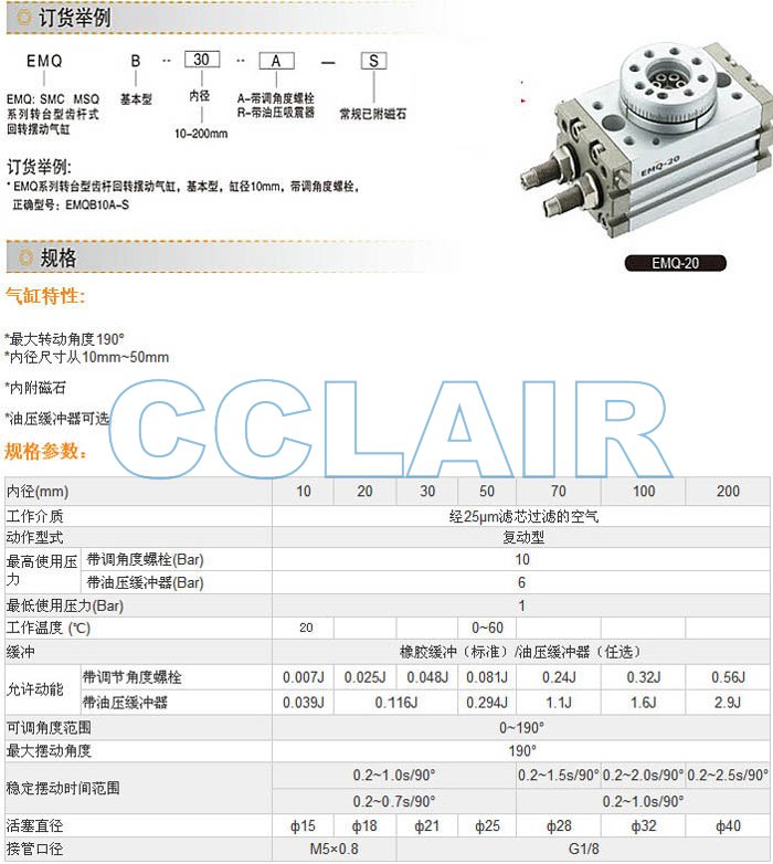 EMQB10A,EMQB20R,EMQB30A,EMQB50R,EMQB70A,EMQB100R,EMQB200A,擺動(dòng)氣缸