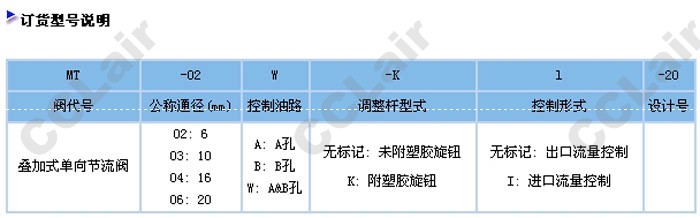 MT-02A-K-20,MT-02B-20,MT-02W-K-20,MT-03A-I-20,MT-03W-I-20,疊加式單向節(jié)流閥