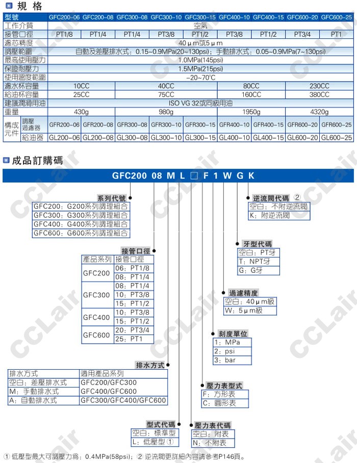 GFC200-06-M-L-NF1-W,GFC200-08-M-L-NF1-W,GFC200-06-L-NF1-W,GFC200-08-L-NF1-W,調(diào)理組合