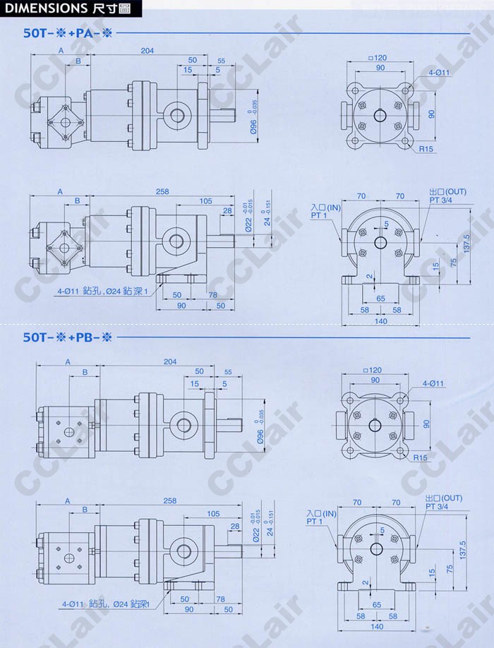 型號: 50F-12-FRR+50T,50T-14,50T-17,50T-20,50T-23,50T-26,50F-30-FRR+PA-X,50F-36,50F-39,50F-43,葉片泵