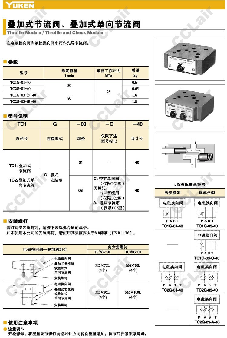 TC1G-01-40,TC1G-03-C-40,TC1G-03-40,TC1G-03-A-40,疊加式節(jié)流閥,YUCIYUKEN榆次油研 |