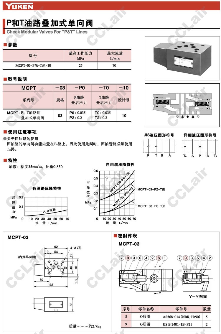 MCPT-03-P0-T0-10,MCPT-03-P0-T2-10,MCPT-03-P2-T0-10,MCPT-03-P2-T2-10,疊加式單向閥,YUCIYUKEN榆次油研