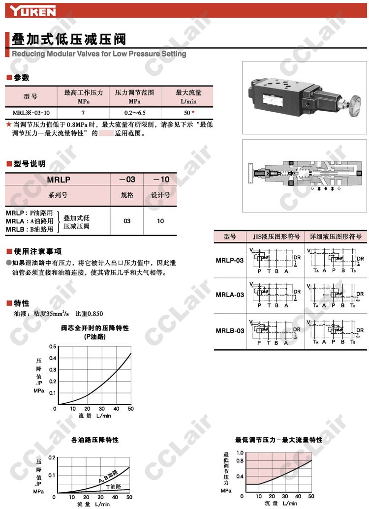 MRLP-03-10,MRLA-03-10,MRLB-03-10,疊加式低壓減壓閥,YUCIYUKEN榆次油研 |