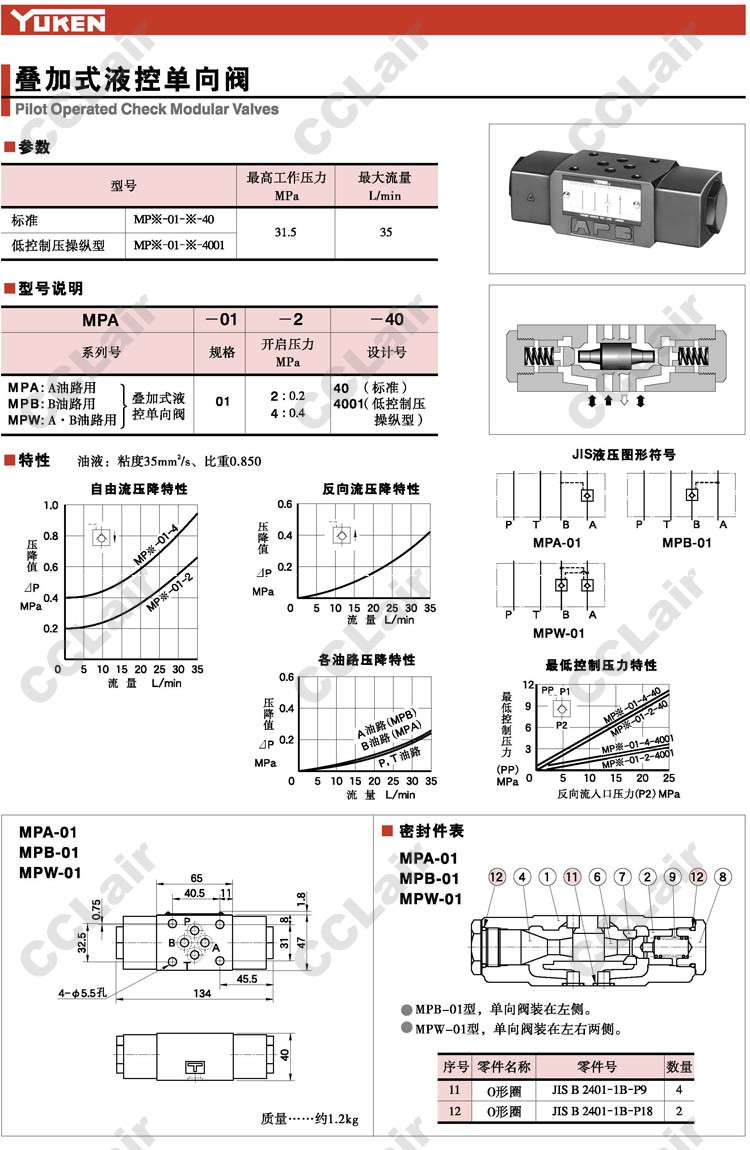 MPA-01,MPB-01,MPW-01,MPA-01-2-40,MPB-01-2-40,MPW-01-2-40,疊加式液控單向閥