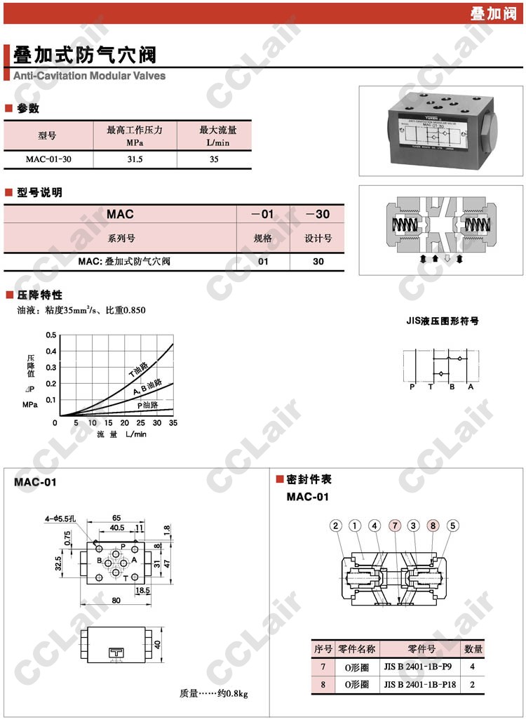 MAC-01-30,疊加式防氣穴閥,YUCIYUKEN榆次油研