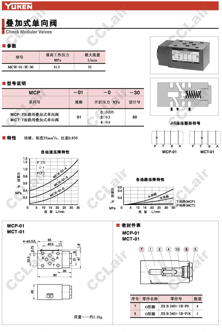 MCP-01-0-30,MCP-01-2-30,MCP-01-4-30,MCT-01-0-30,MCT-01-2-30,MCT-01-4-30,疊加式單向閥,YUCIYUKEN榆次油研