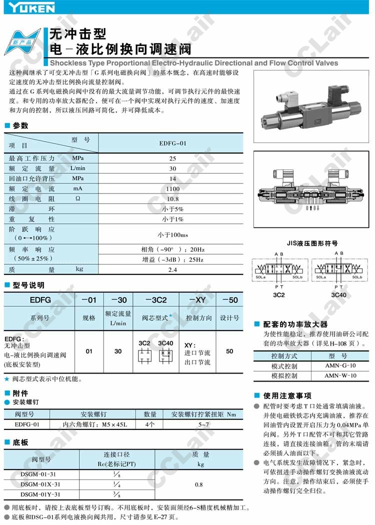 EDFG-01-30-3C2-XY-50,EDFG-01-30-3C4-XY-50,電-液比例換向調(diào)速閥,YUCIYUKEN榆次油研