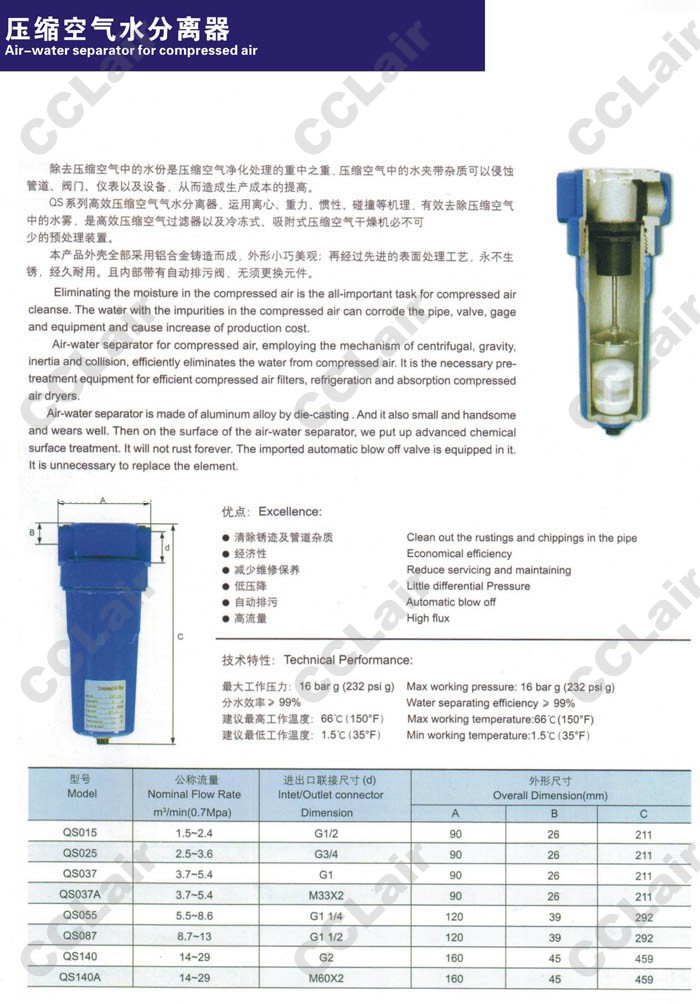 QS015,QS025,QS037,QS037A,QS055,QS087,QS140,QS140A,壓縮空氣水分離器,無錫昌林