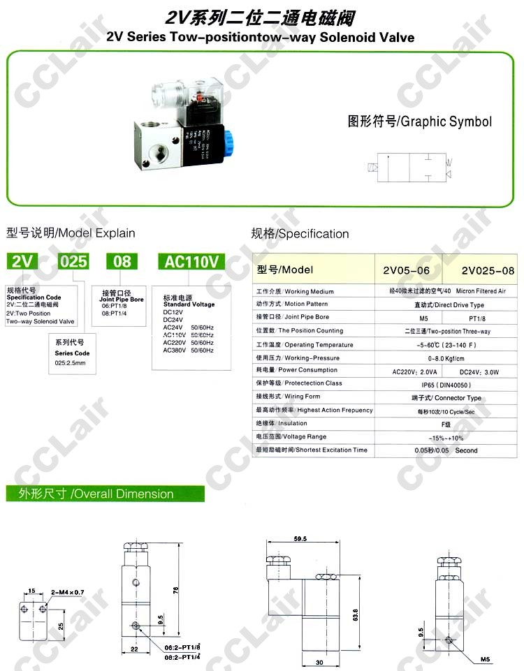 2V025-06-DC12V,2V025-06-DC24V,2V025-06-AC24V,2V025-06-AC110V,2V025-06-AC380V,