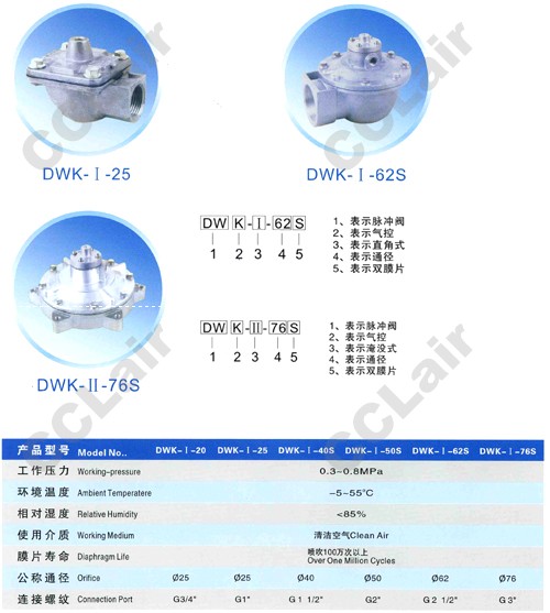 DWK-I-20,DWK-I-25,DWK-I-40S,DWK-I-50S,DWK-I-62S,DWK-I-76S,直角式氣控脈沖閥