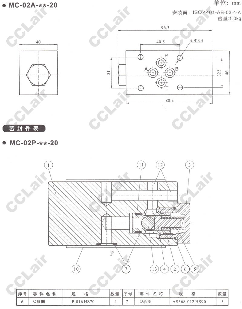 MC-02P-05-20,MC-02A-05-20,MC-02B-05-20,MC-02T-05-20,MC-02P-50-20,MC-02A-50-20,疊加式單向閥