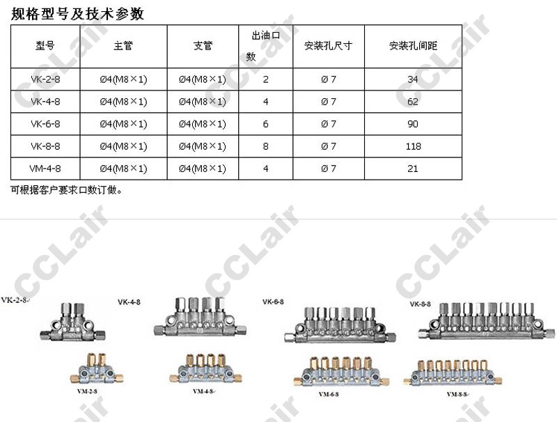 VK-2-8,VK-4-8,VK-6-8,VK-8-8,VM-4-8,抵抗式分配器