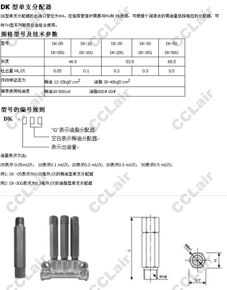 DK-05,DK-10,DK-20,DK-30,DK-50,DK-05G,DK-10G,DK-20G,DK-30G,DK-50,單支分配器