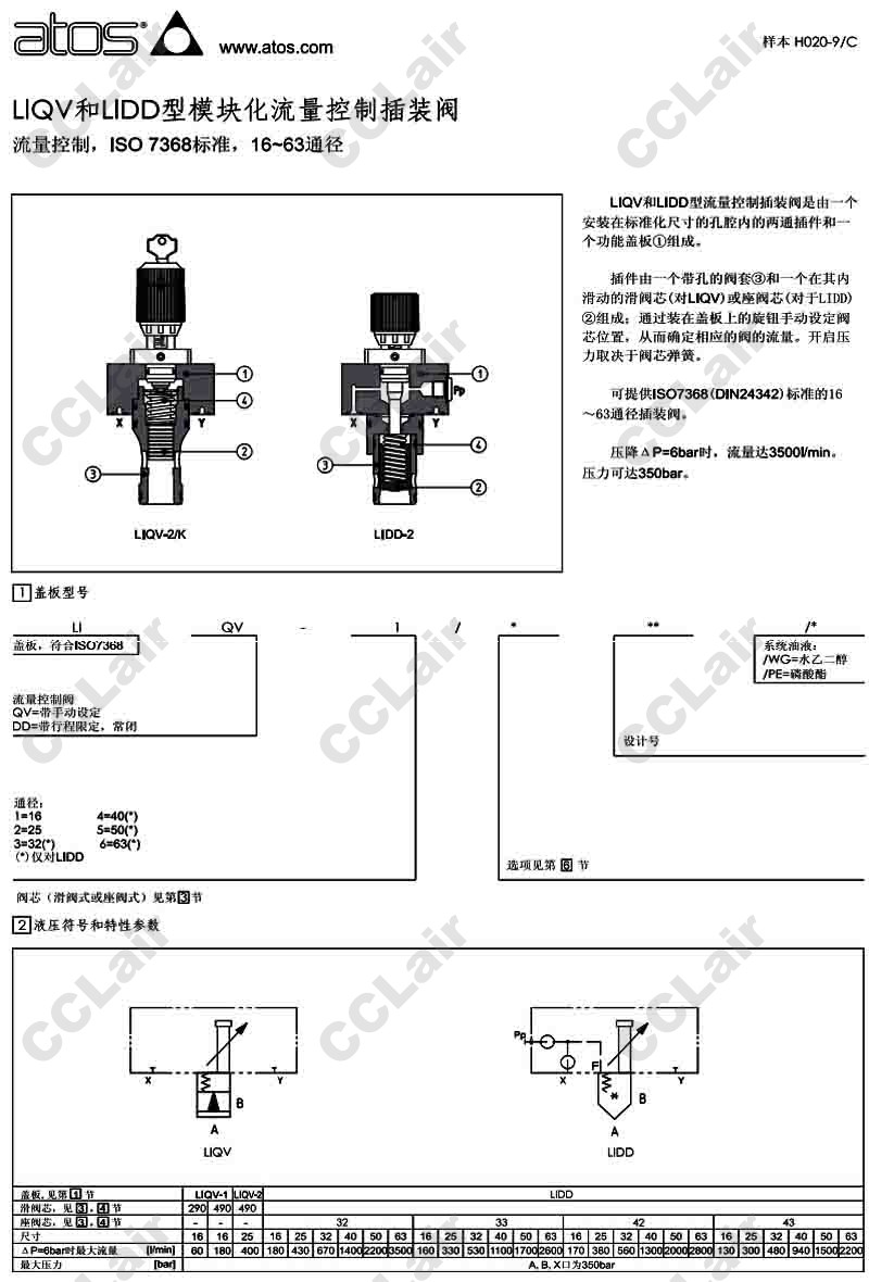 LIQV-1/K,LIQV-2/K,LIDD-3/E,LIDD-4/E,LIDD-5/E,LIDD-6/E,阿托斯ATOS壓力控制插裝閥 |