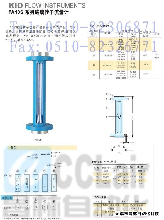 FA10S-15,FA10S-25,FA10S-40,FA10S-50,玻璃轉(zhuǎn)子流量計