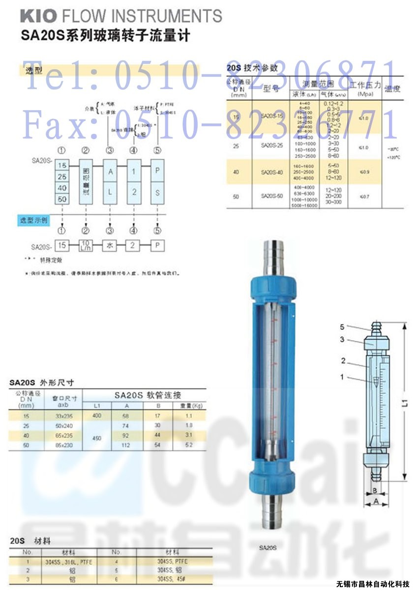 SA20S-15,SA20S-25,SA20S-40,SA20S-50玻璃轉(zhuǎn)子流量計