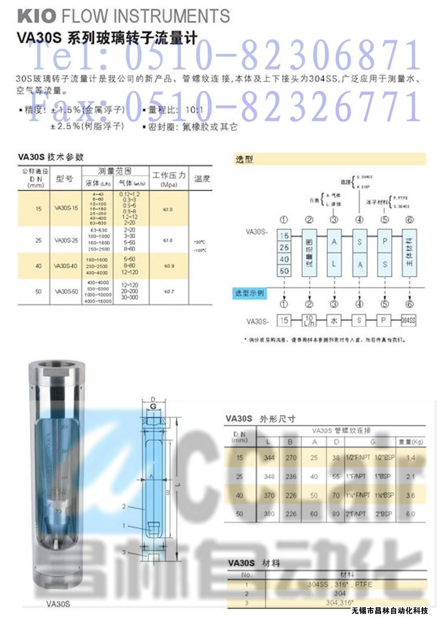 VA30S-15,VA30S-25,VA30S-40,VA30S-50玻璃轉(zhuǎn)子流量計(jì)