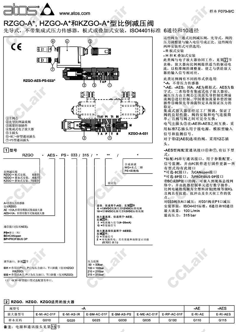 KZGO-AES-BP-031/50,阿托斯ATOS KZGO-AES-BP-031/100,KZGO-AES-BP-031/210,KZGO-AES-BP-031/315,