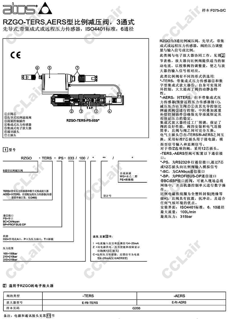 RZGO-AERS,RZGO-TERS,RZGO-AERS-PS-033/315/C,RZGO-AERS-BC-033/315/I,阿托斯ATOS比例減壓閥
