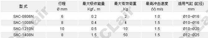 氣立可(chelic),SAC-0806N,SAC-1008N,SAC-1210N,SAC-1408N,油壓緩沖器
