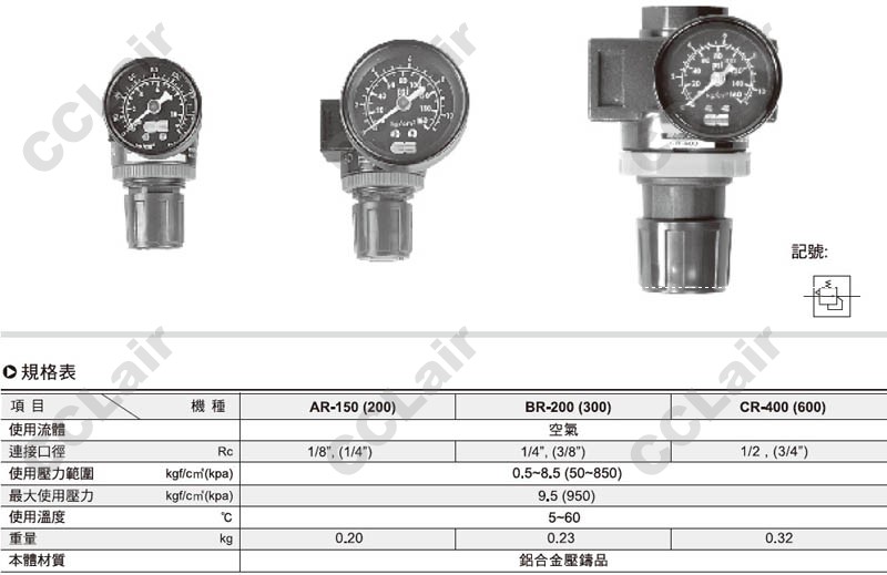 氣立可(chelic),AR-150,AR-200,BR-200,BR-300,CR-400,CR-600,AR-150-G-PG10A,調(diào)壓器