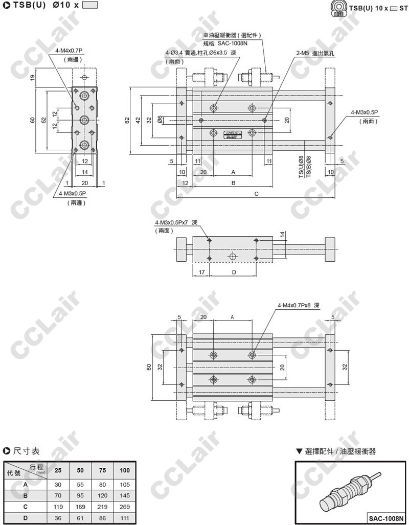 TSB10*25-SE2,TSB10*50-SE2,TSB10*75-SE2,TSB10*100-SE2,導桿滑塊氣缸