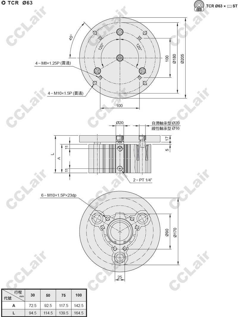 TCR40*30-SD2,TCR40*50-SD2,TCR40*75-SD2,TCR40*100-SD2,TCR63*30-SD2,TCR63*50-SD2,三軸頂升氣缸