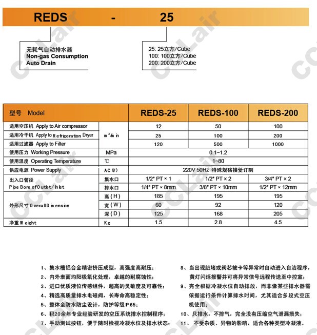 REDS-25,REDS-100,REDS-200,無耗氣自動排水器,CCLair