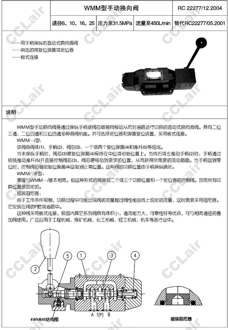 3WMM6,3WMM10,3WMM16,3WMM25,4WMM6,4WMM10,4WMM16,4WMM25,3WMM10W10,4WMM6A50,huade手動換向閥