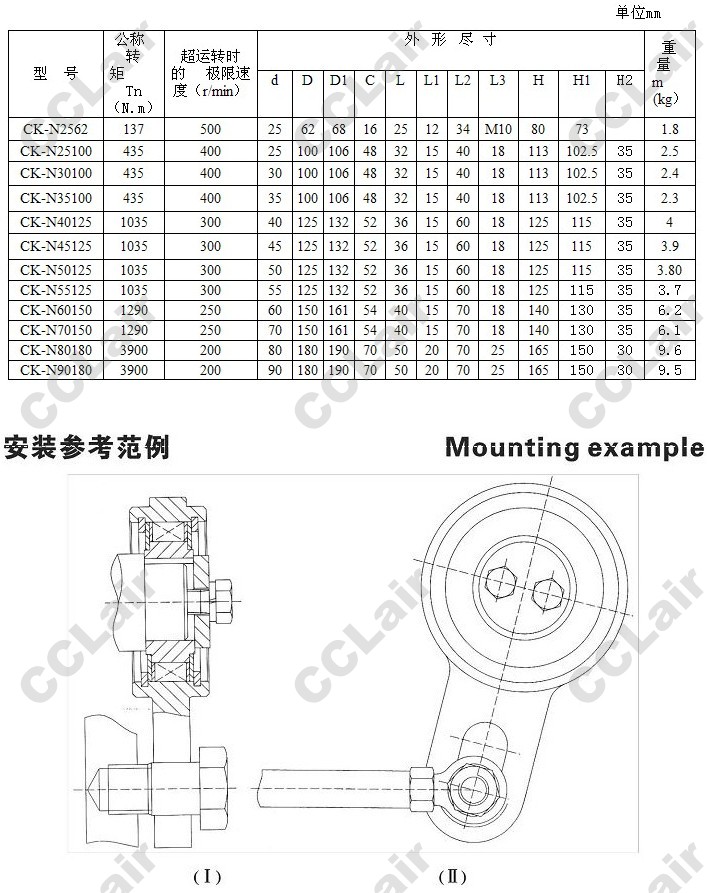 CK-N2562,CK-N25100,CK-N30100,CK-N35100,CK-N40125,CK-N45125,CK-N50125,CK-N55125,CK-N60150,單向超越離合器