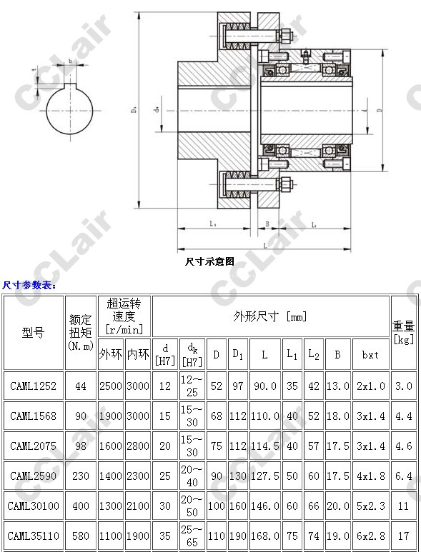 CAML1252,CAML1568,CAML2075,CAML35110,CAML40125,CAML55160,CAML60170,CAML70190,CAML80210,單向超越離合器 |