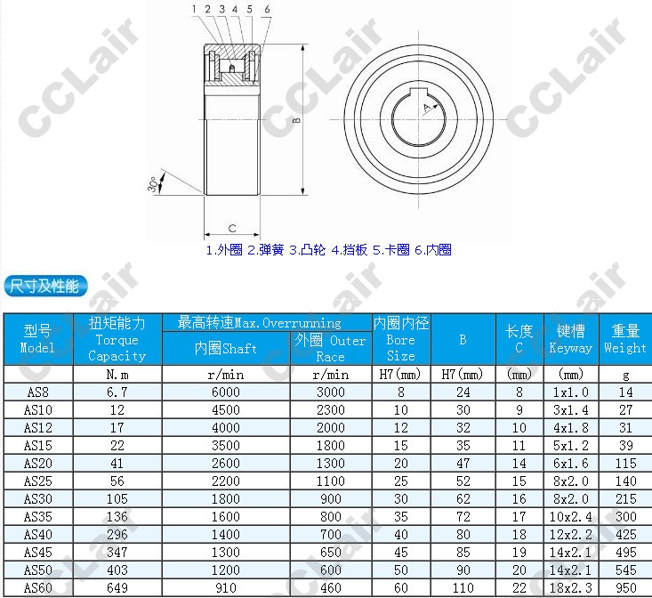AS8,AS10,AS12,AS15,AS20,AS25,AS30,AS35,AS40,AS45,AS50,AS60,凸輪離合器