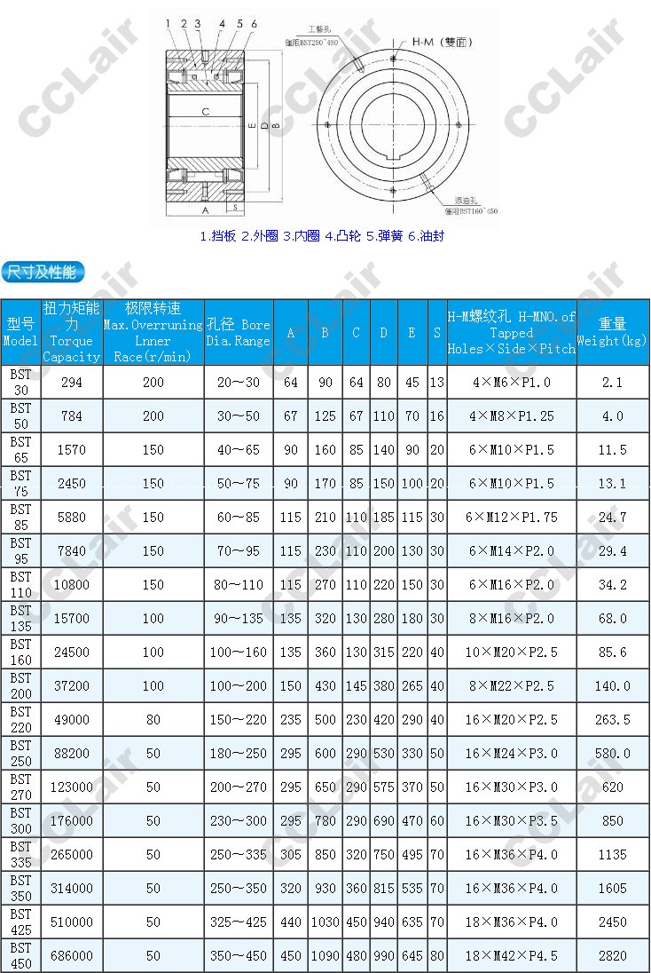 BST30,BST50,BST65,BST75,BST85,BST95,BST110,BST135,BST160,BST200,BST350,BST425,BST450,凸輪離合器 |