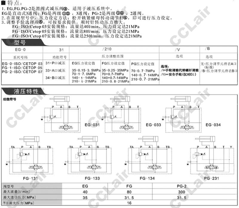 EG-031/35,EG-033/140,EG-034/210,FG-131/35,FG-133/140,FG-134/210,PG-231/70,PG-233/140,疊加式減壓閥