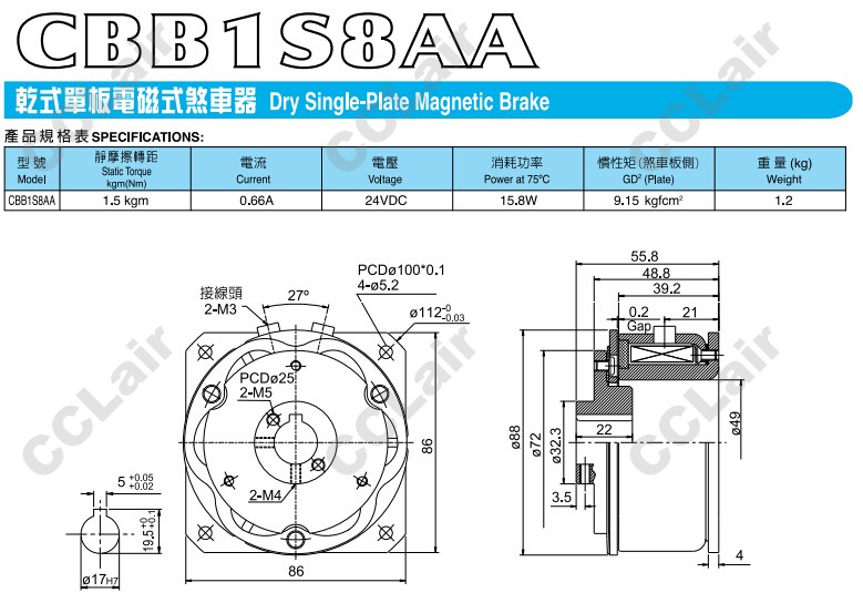 CBB1S8AA,電磁剎車器,CCLair