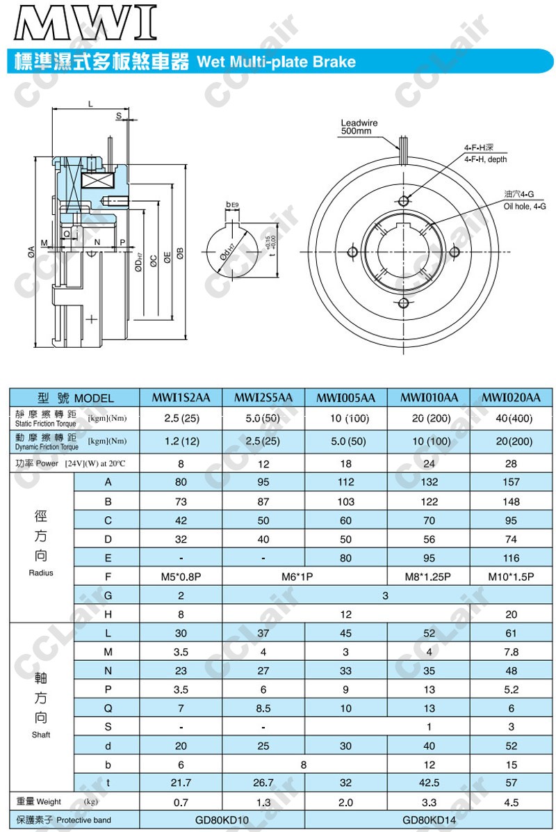 MWI1S2AA,MWI2S5AA,MWI005AA,MWI010AA,MWI020AA,濕式多板剎車器,CCLair