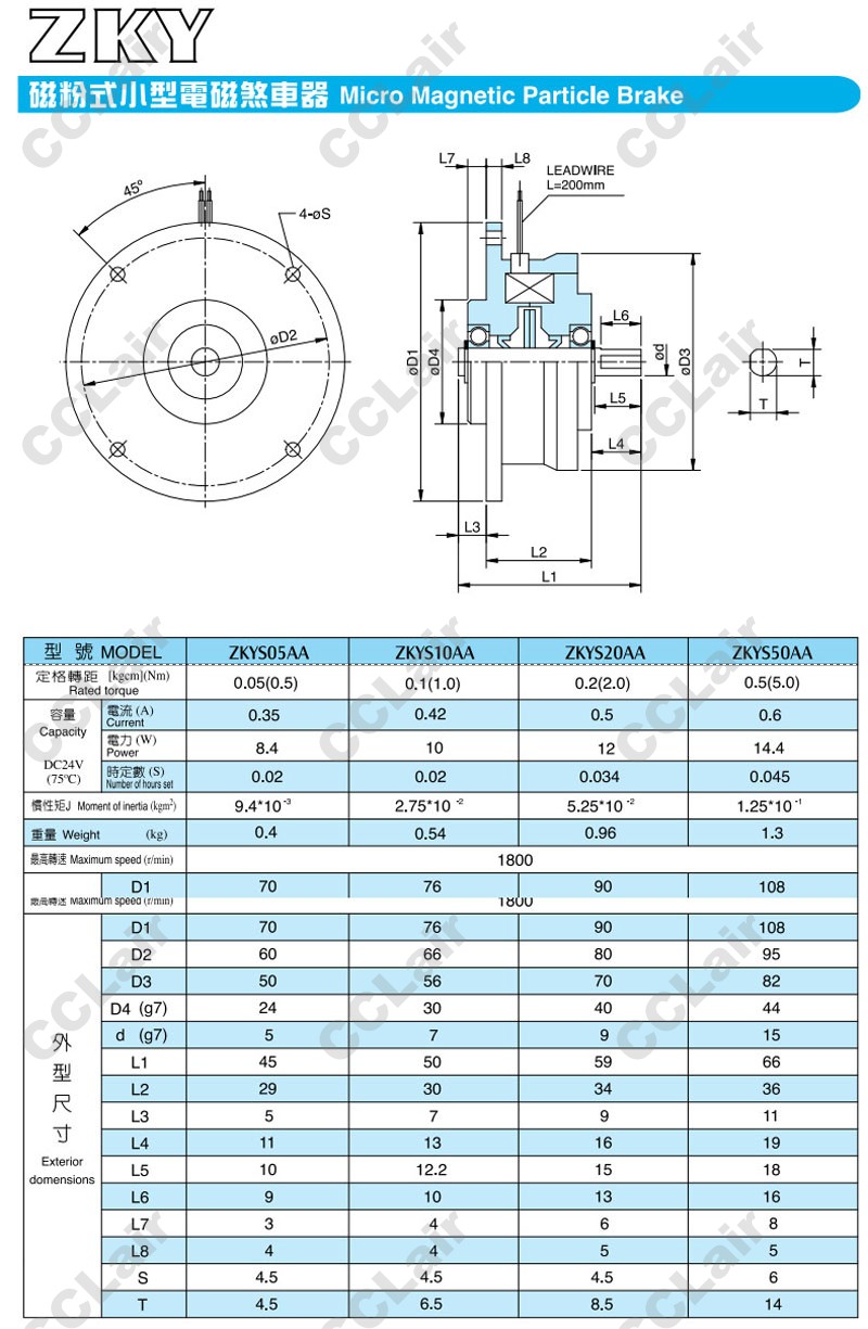 ZKYS05AA,ZKYS10AA,ZKYS20AA,ZKYS50AA,電磁剎車器,CCLair