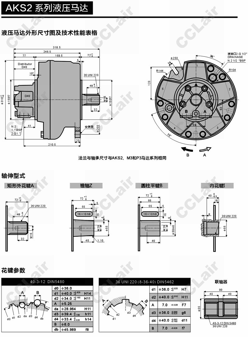 | 型號 | 理論排量(ml/r) | 額定壓力Mpa | 尖峰壓力Mpa | 額定扭矩(n.m) | 單位扭矩(n.m/mpa) | 連續(xù)轉速(r/min) | 最高轉速(r/min) | 最大功率(KW) | 重量(KG) |