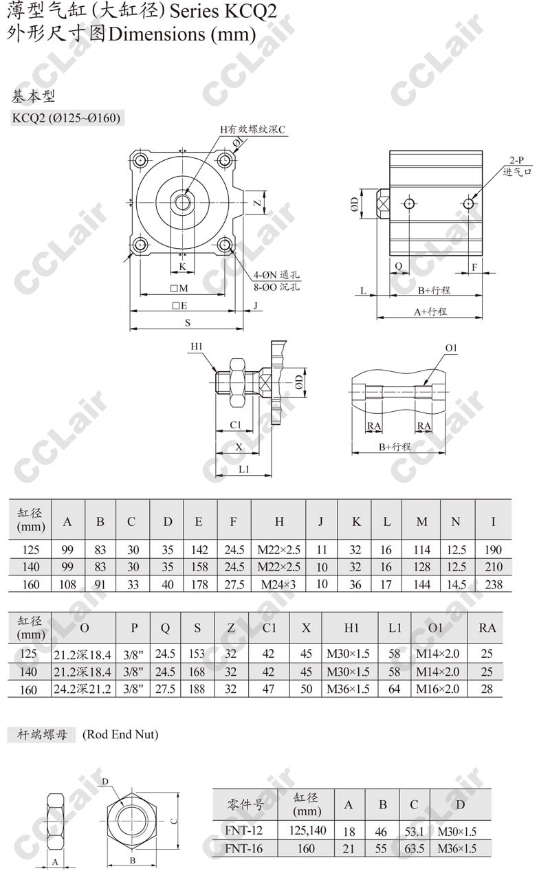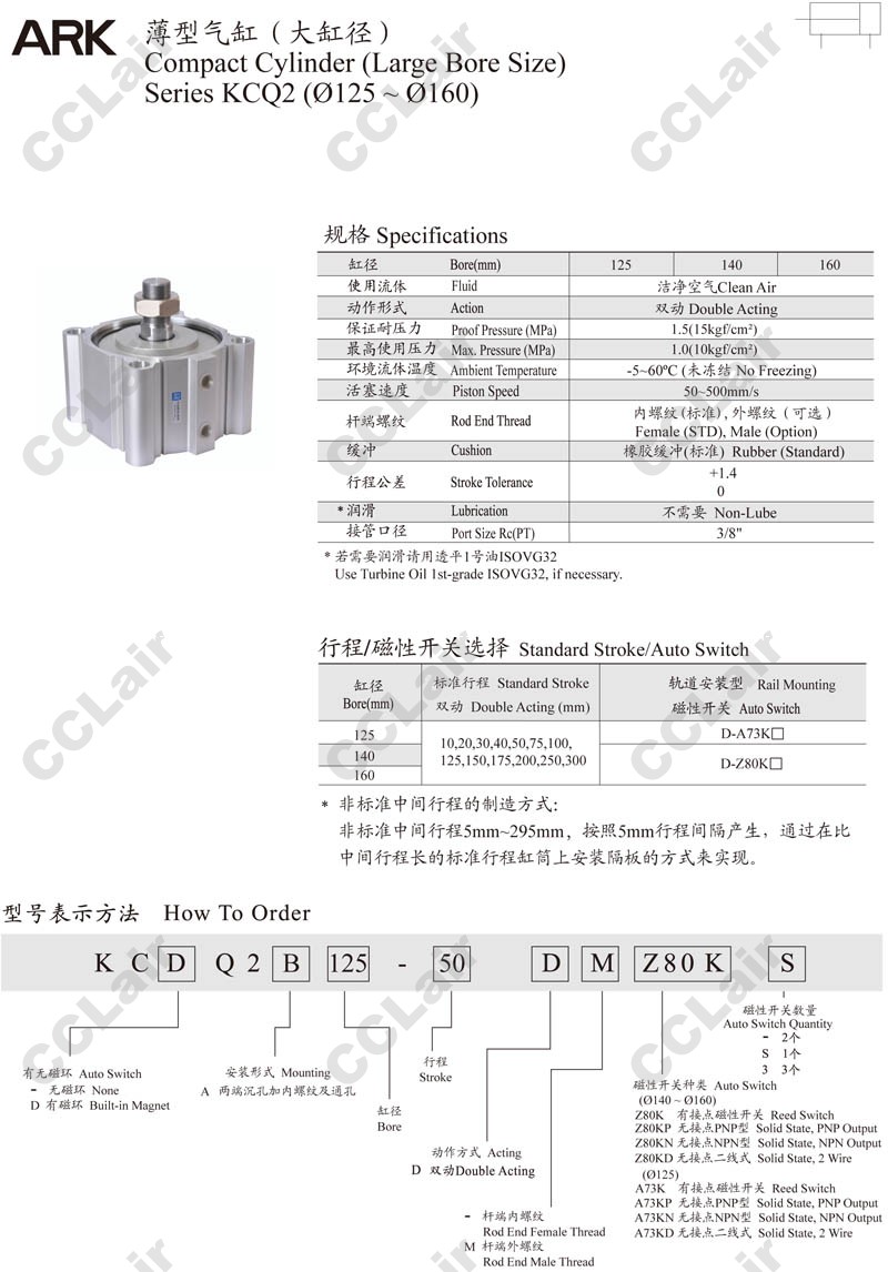 型號: KCQ2A125,KCQ2A140,KCQ2A160,KCQ2A125-100,KCQ2A140-175,KCQ2A160-125,KCQ2A140-40,ARK薄型氣缸