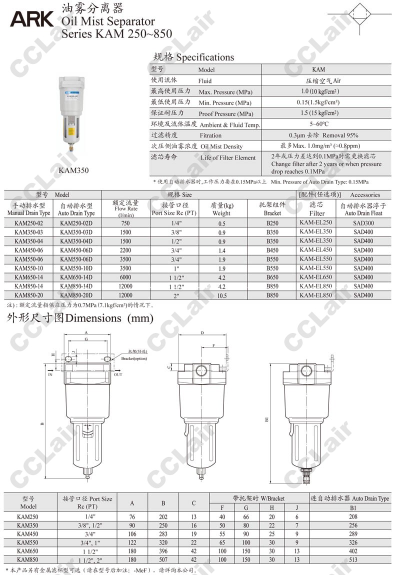 型號(hào): KAM250,KAM350,KAM450,KAM550,KAM650,KAM850,KAM850-20D,KAM450-06D,ARK油霧分離器