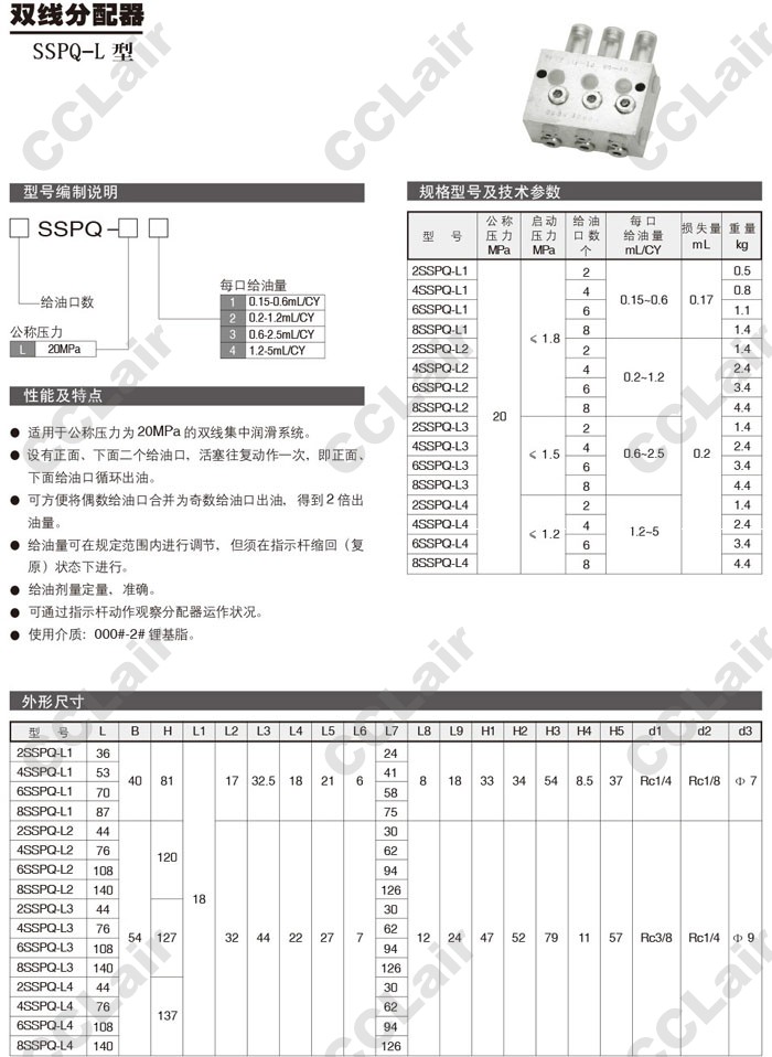 2SSPQ,4SSPQ,6SSPQ,8SSPQ,2SSPQ-L1,6SSPQ-L2,4SSPQ-L3,8SSPQ-L4,雙線分配器