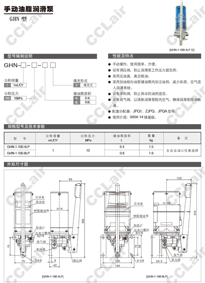 GHN-1-100-4LP,GHN-1-100-8LP,手動(dòng)油脂潤(rùn)滑泵