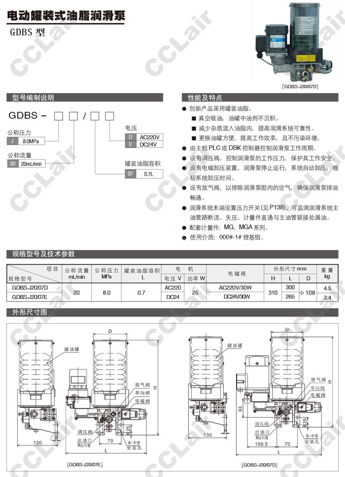 GDBS-J20/07D,GDBS-J20/07E,電動罐裝式油脂潤滑泵