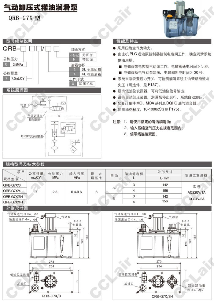 QRB-G7X/3,QRB-G7X/4,QRB-G7X/3H,QRB-G7X/4H,氣動卸壓式稀油潤滑泵