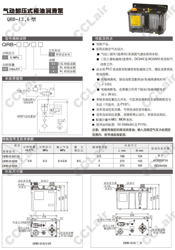 QRB-I2.6/2.5X,QRB-I2.6/3X,QRB-I2.6/4X,氣動卸壓式稀油潤滑泵