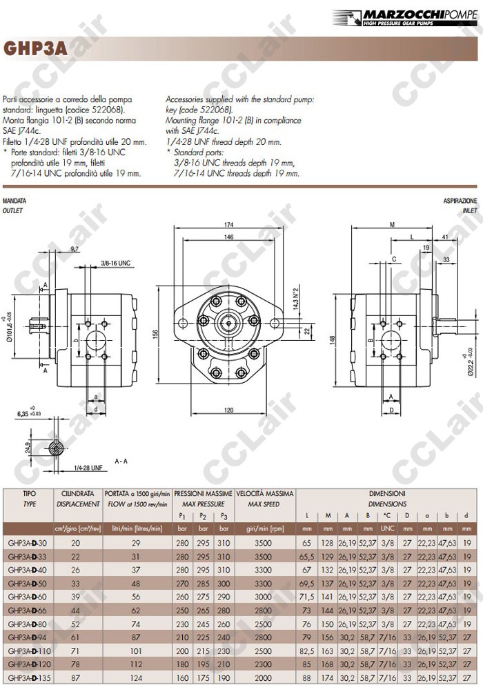 GHP3A-D,GHP3A-D-30,GHP3A-D-33,GHP3A-D-40,GHP3A-D-50,GHP3A-D-60,GHP3A-D-66,MARZOCCHI齒輪油泵