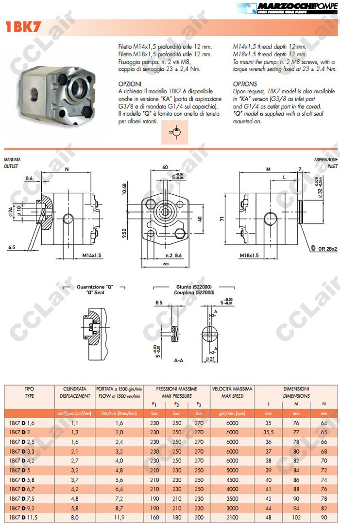 1BK7D,1BK7D1.6,1BK7D2,1BK7D2.5,1BK7D3.3,1BK7D4.2,1BK7D5,1BK7D5.8,1BK7D6.7,MARZOCCHI齒輪油泵 |