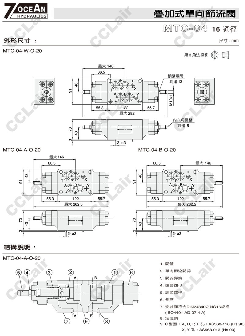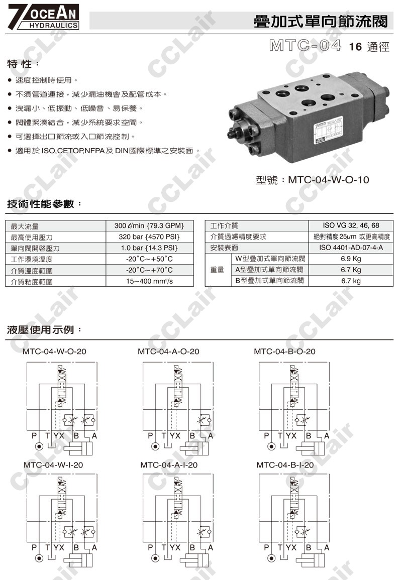 MTC-04-W,MTC-04-A,MTC-04-B,MTC-04-B-I-20,MTC-04-A-I-10,7OCEAN七洋疊加式單向節(jié)流閥