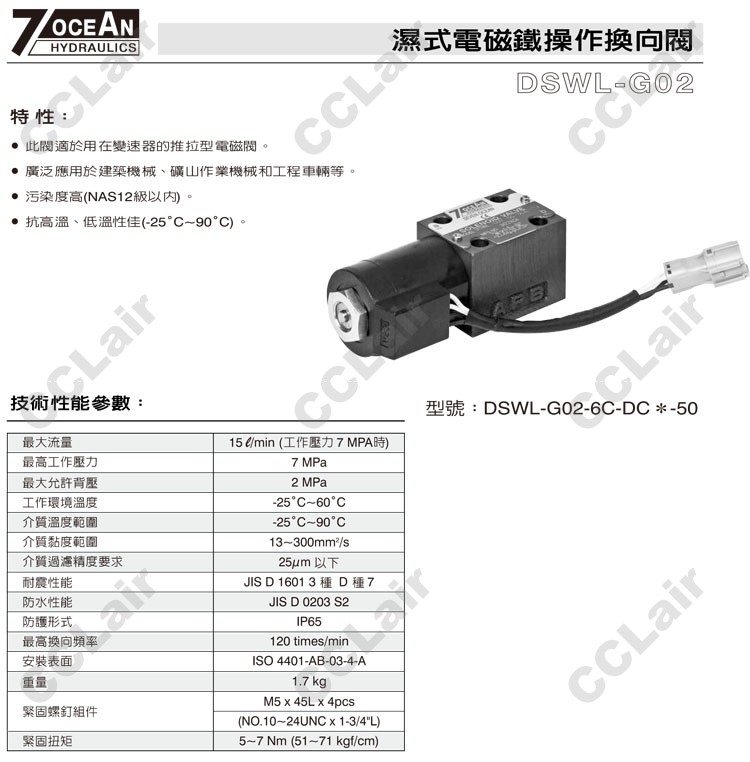 DSWL-G02,DSWL-G02-2C-DC12-50,DSWL-G02-2C-DC12-50A,DSWL-G02-2C-DC24-50,7OCEAN七洋濕式電磁鐵操作換向閥