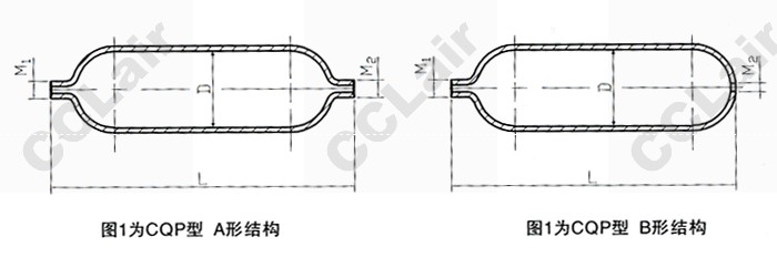 1) 訂貨時須寫明型號代號全稱,如:工作壓力為20MPa.公稱容量16L,直徑、為Φ219結(jié)構(gòu)形式為雙頭的儲氣罐CQP219-16/20-A。